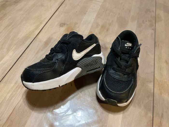 Nike air max bébé en pointure 23,5. Portées mais en excellent état simplement le blanc un peu moins blanc à certains endroits de la semelle (voir photo).