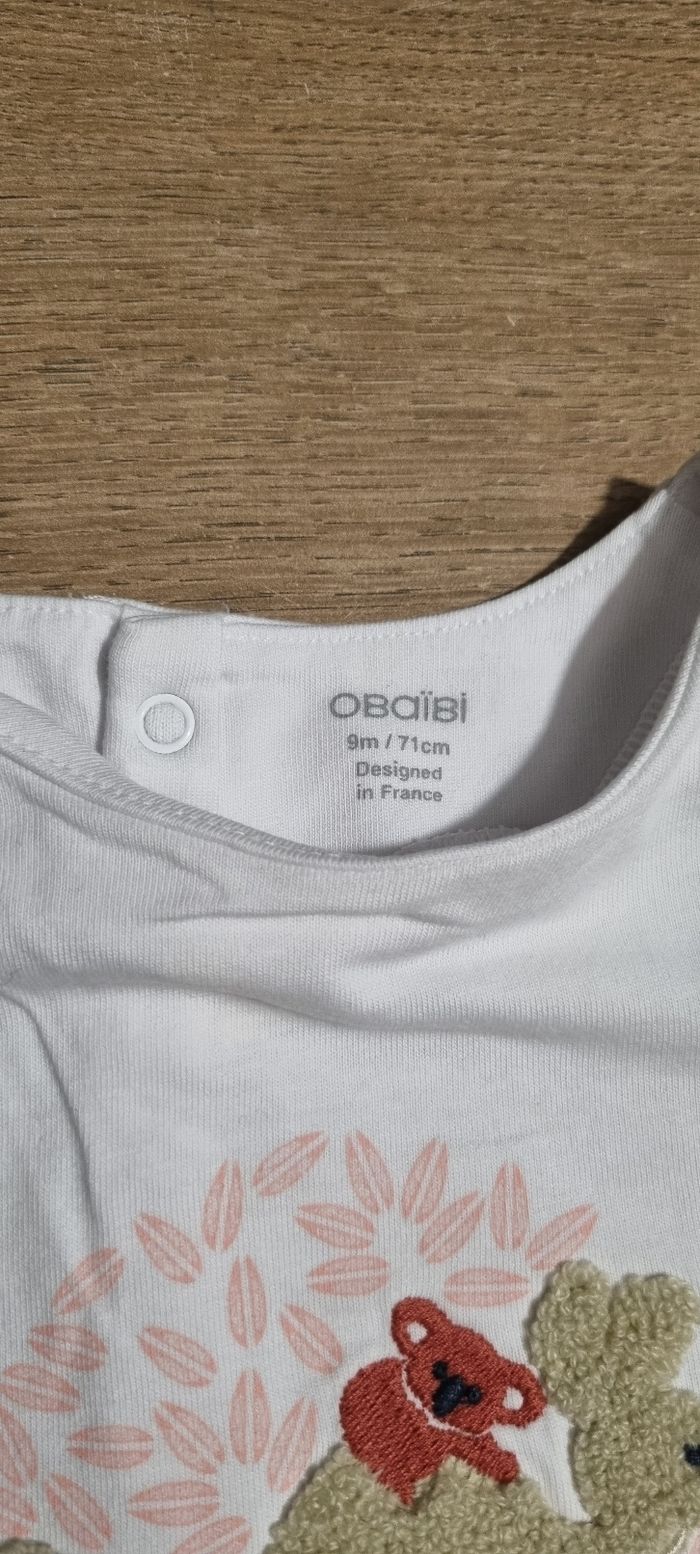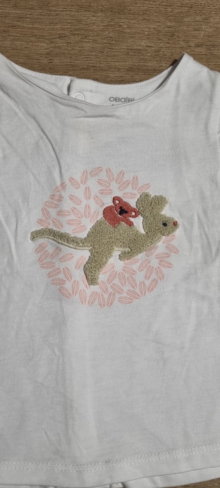 T-shirt à manches courtes motif kangourou et panda Fermeture par boutons pression le long du dos Obaïbi taille 9 mois Neuf, jamais porté