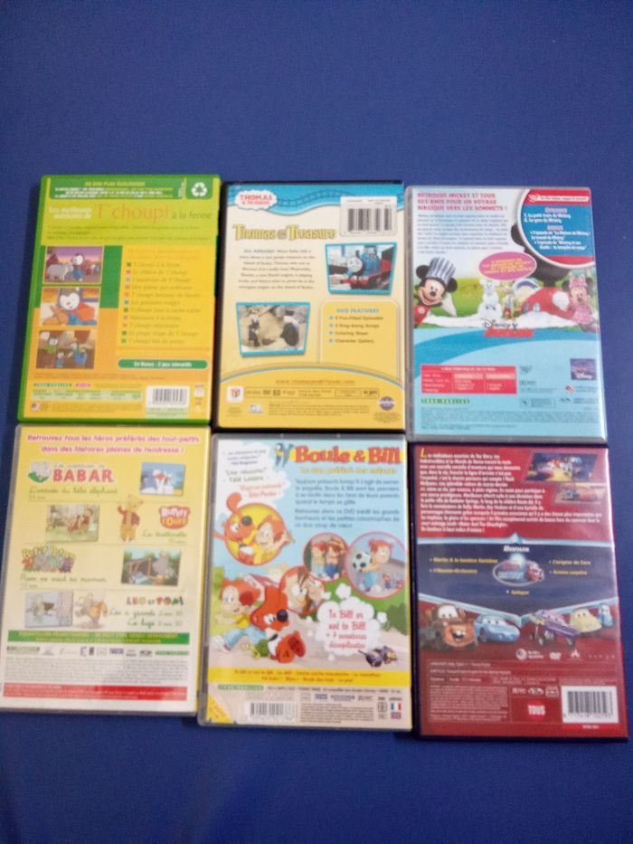 Lot de 6 DVD enfant, mixte, Mickey, T'choupi, cars, Babar thomas le train, boule et Bill etc.dis..
