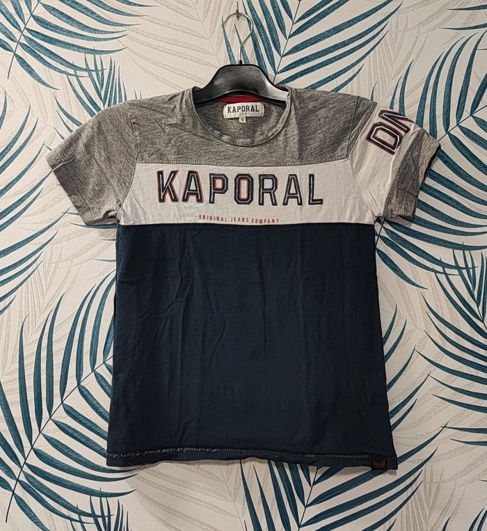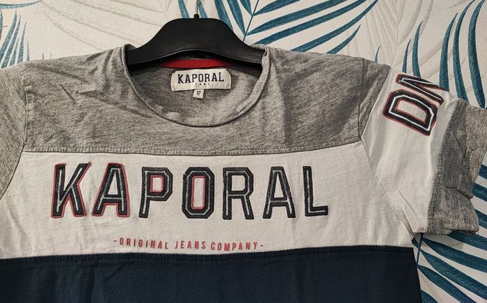 T-shirt de la marque KAPORAL - Gris et marine - Manches courtes - Taille : 12 ans ❌ Bon état car bien porté (comme le montre les photos) #tshirtkaporal12ans #kaporal #haut12ans #garcon12ans #kat02600garcon12ans #tshirt12ans