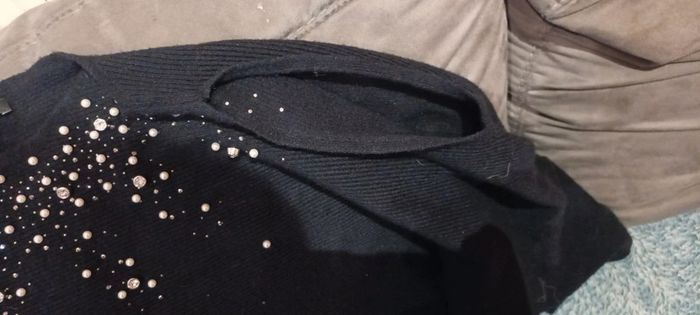 Très jolie pull et agréable à porter le dessus des épaules et ouvert comme montré sur la photo .porter 1 fois à Noël