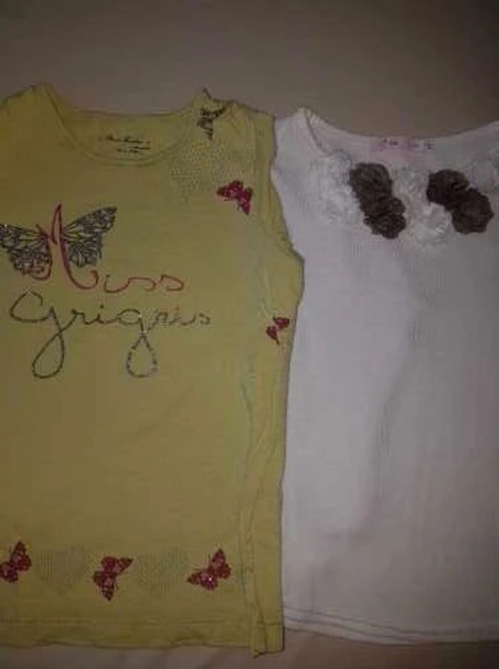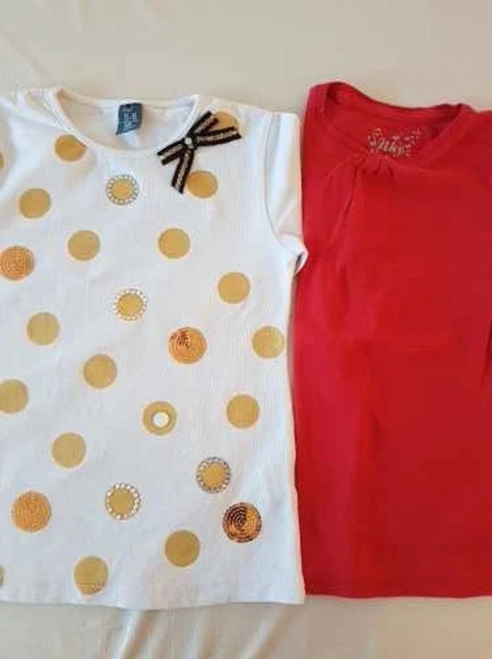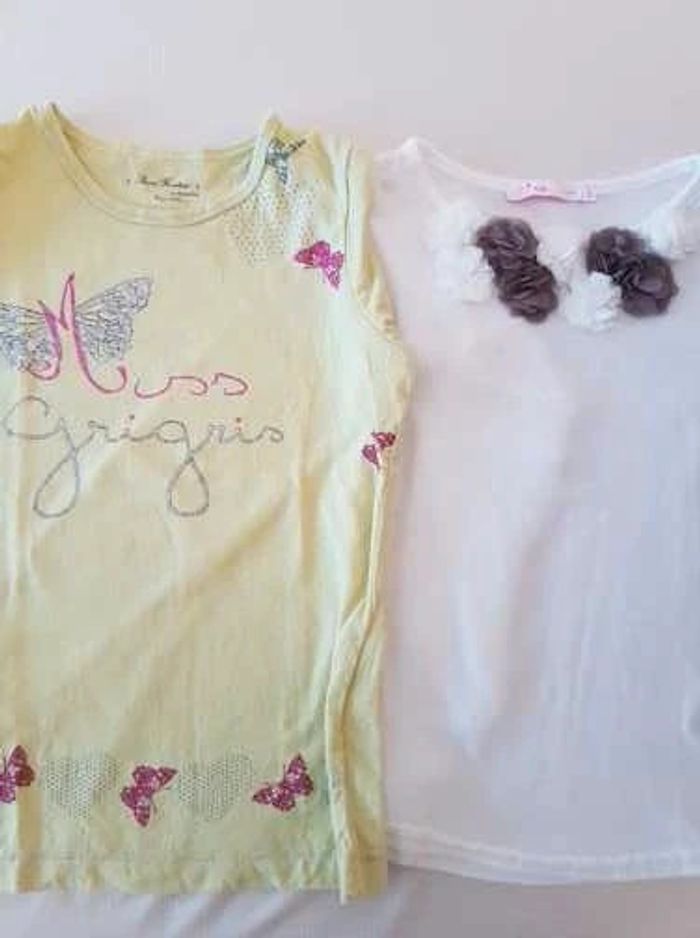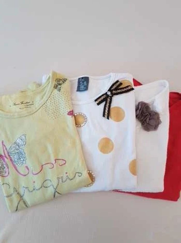 Lot de 4 t-shirts manches longues Beau lot de 4 t-shirts manches longues composé de : - 1 Orchestra vert anis, avec papillons roses et strass et paillettes - 1 Zara kids, blanc et doré (manque perles et strass visible sur photo ) - 1 Gemo écru avec petites fleurs en toile au col - 1 NKY uni rouge Le tout en taille 6 ans. Bien porté mais mérite une seconde vie d'où le petit prix ! #sanvean576ans Regroupez vos achats et économisez sur les frais de port ! 😉