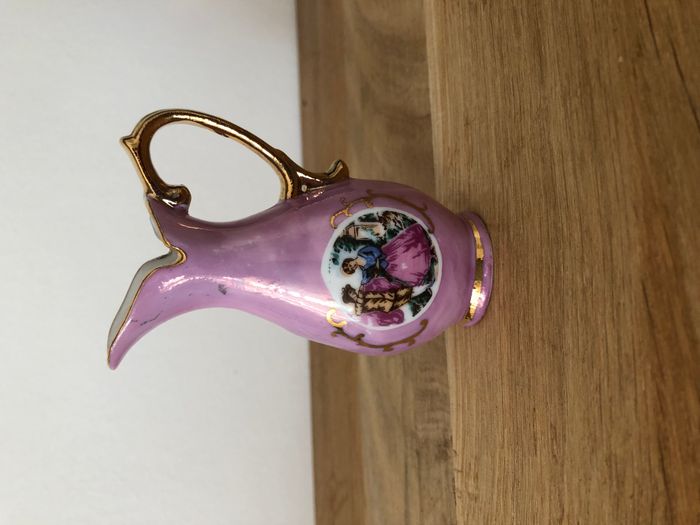 Petite cruche rose miniature en porcelaine et sa boîte - photo numéro 1