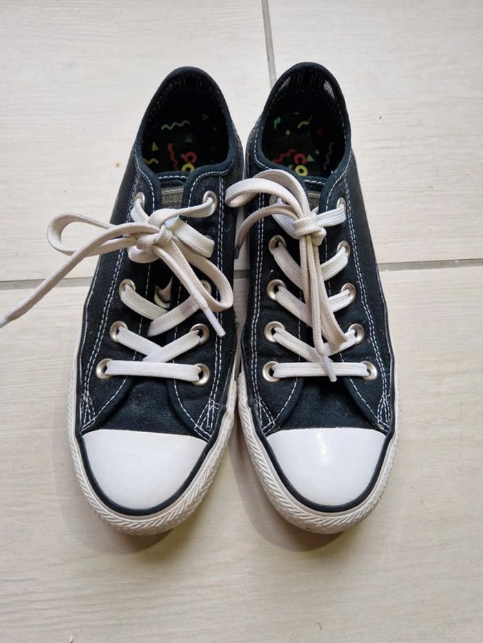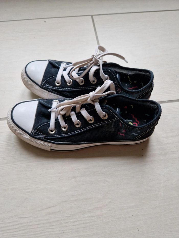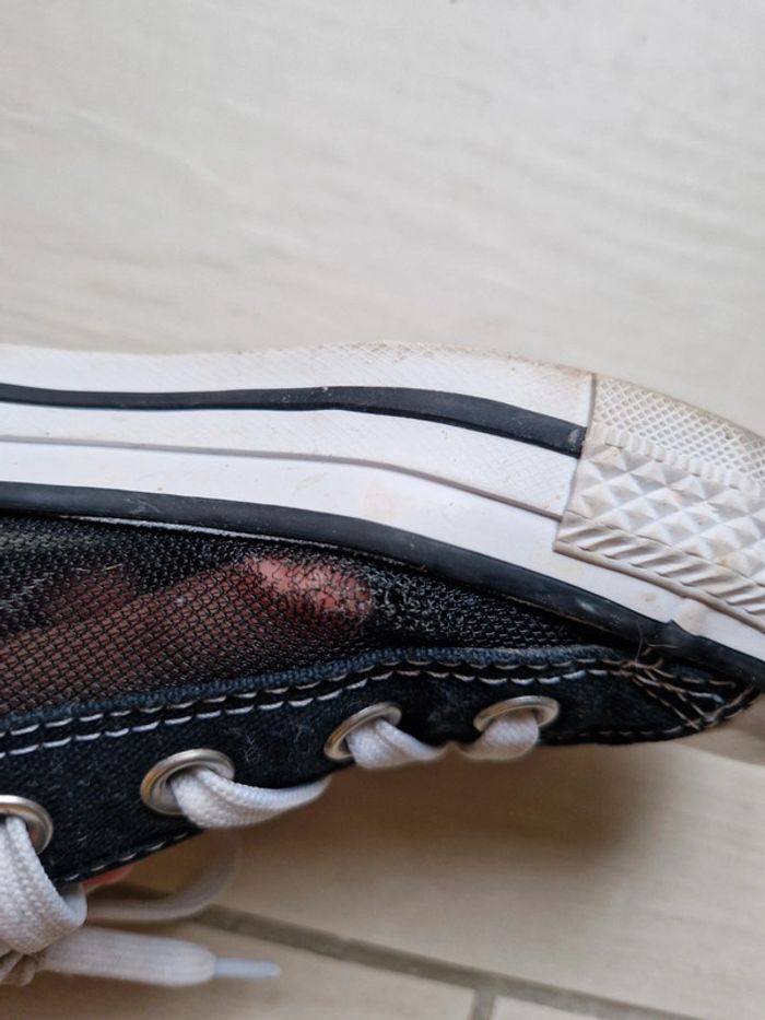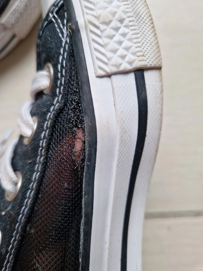 Converse basses noires 36 #julilo7chaussuresfemme Effet maille sur les côtés Attention : chaussures droite et gauche abîmées sur le côté intérieur (voir photos) d'où le petit prix