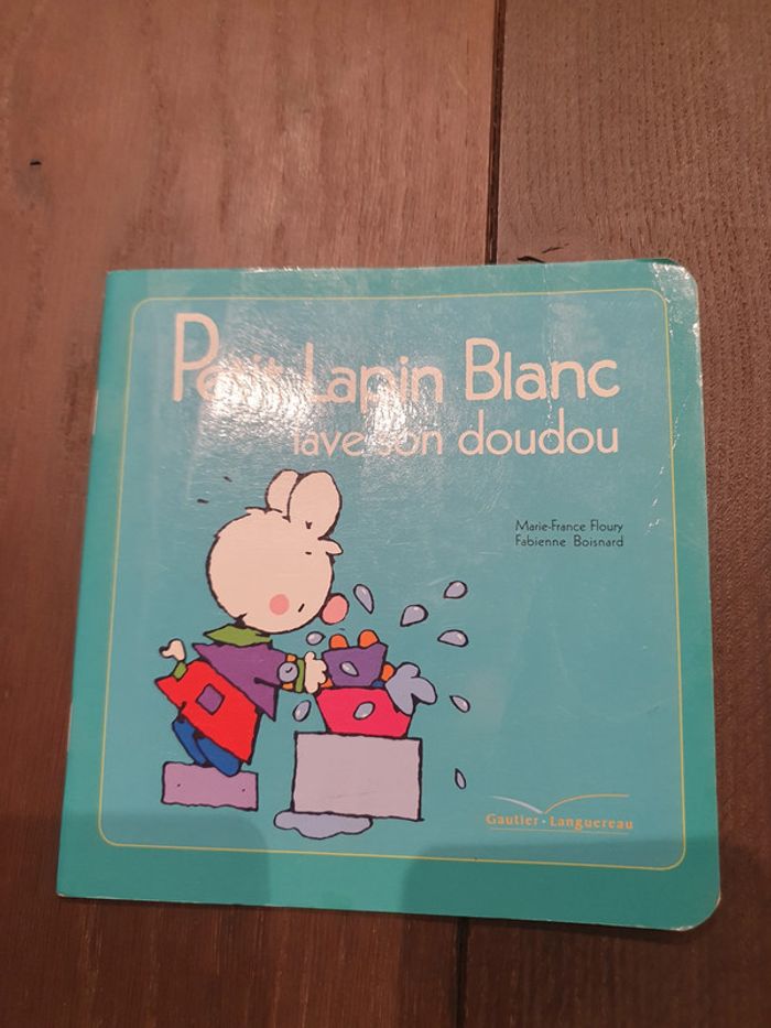 Petit lapin blanc lave son doudou