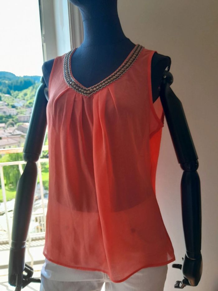 Débardeur rose transparent strass  ONLY taille 38 - photo numéro 6