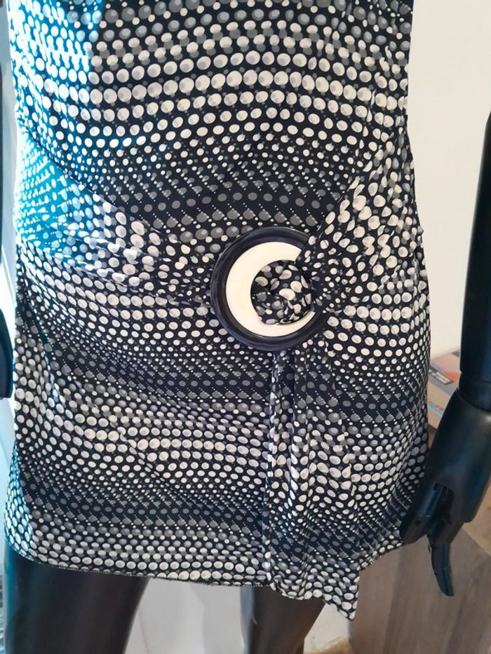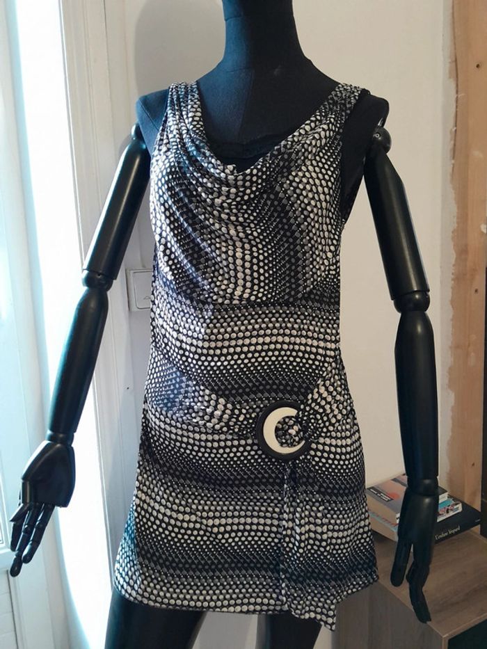 Tunique à pois moulante col bénitier avec dentelle dos nu ceinture en bas - photo numéro 1