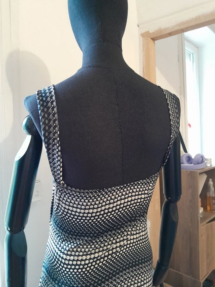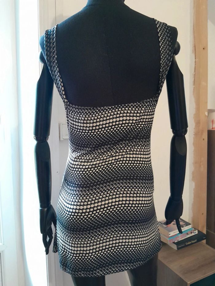 Tunique à pois moulante col bénitier avec dentelle dos nu ceinture en bas - photo numéro 8