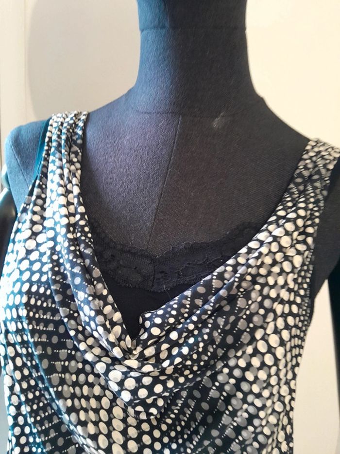Tunique à pois moulante col bénitier avec dentelle dos nu ceinture en bas