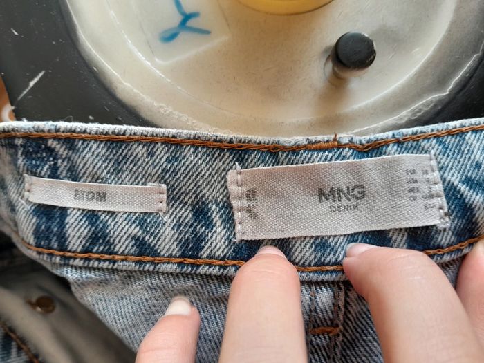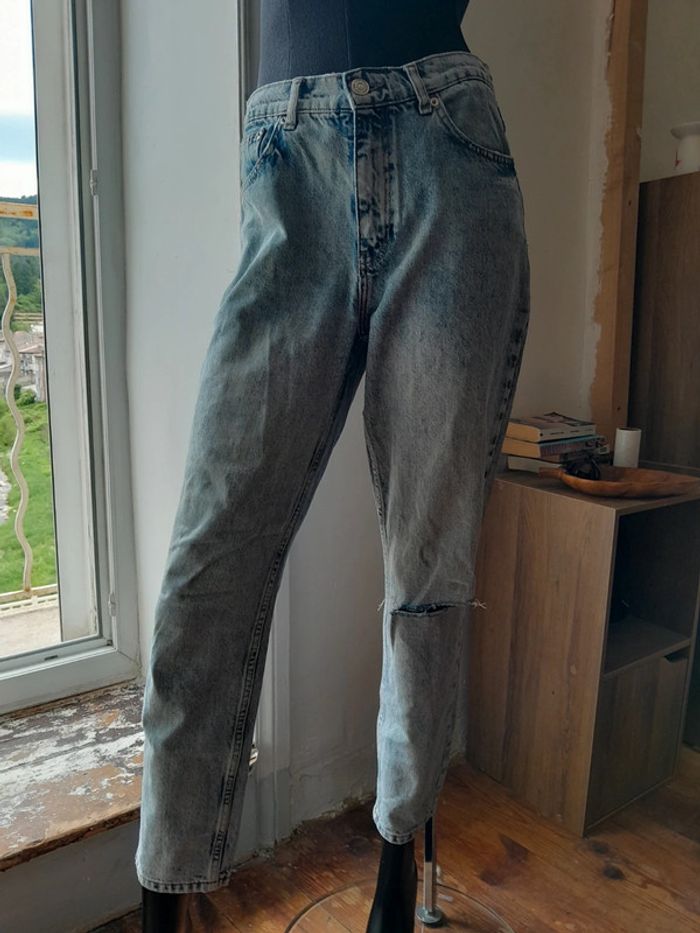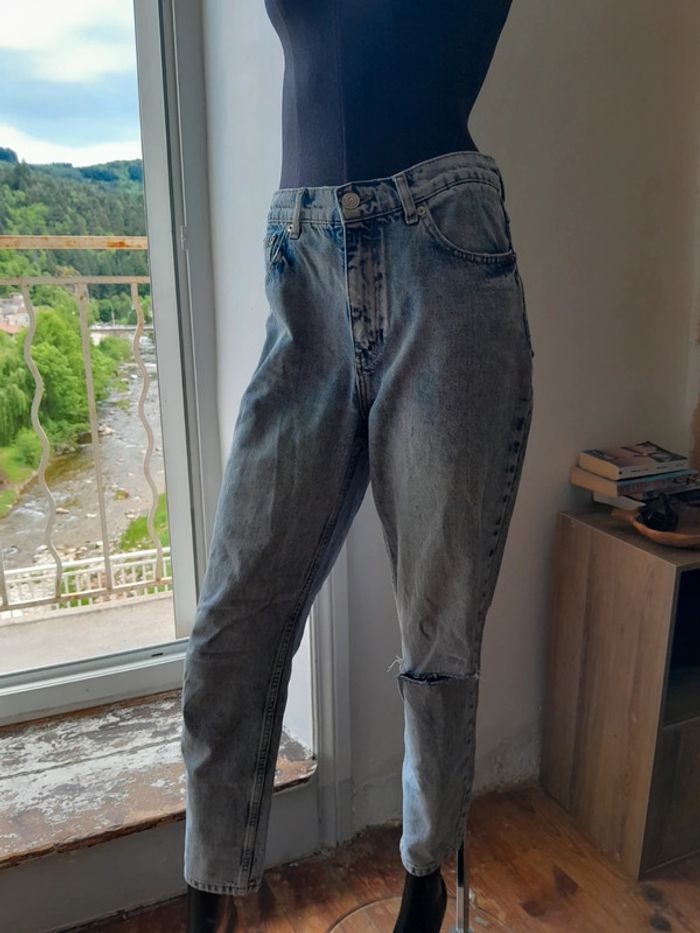 Jeans mom bleu mango taille 34 en coton avec un trou - photo numéro 1