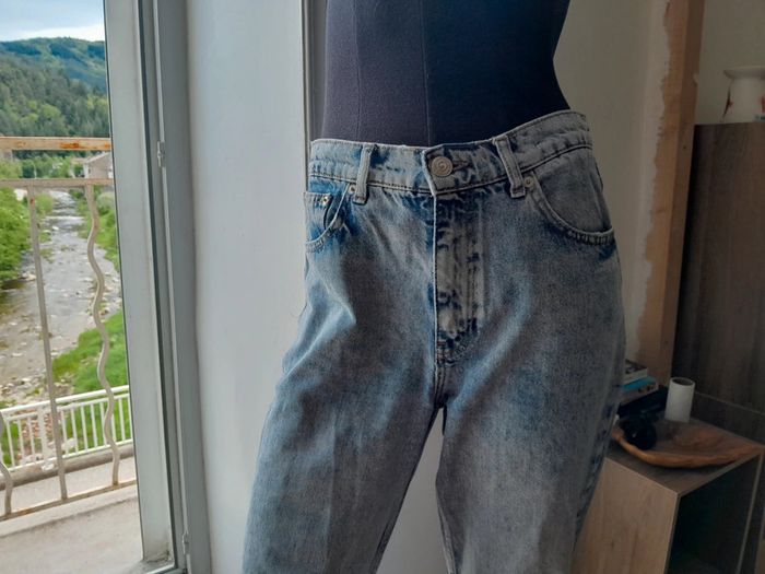 Jeans mom bleu mango taille 34 en coton avec un trou - photo numéro 3