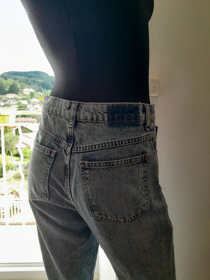 Jeans mom bleu mango taille 34 en coton avec un trou - photo numéro 7