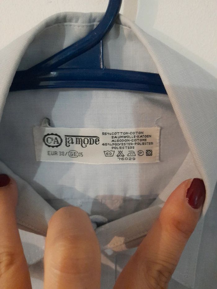 Chemise manche longue. Taille 38. Couleur bleu claire. Marque C&A. Epaule a epaule 42cm Aisselle à aisselle 56cm Longueur 73cm #vetementstaille38louisy37310