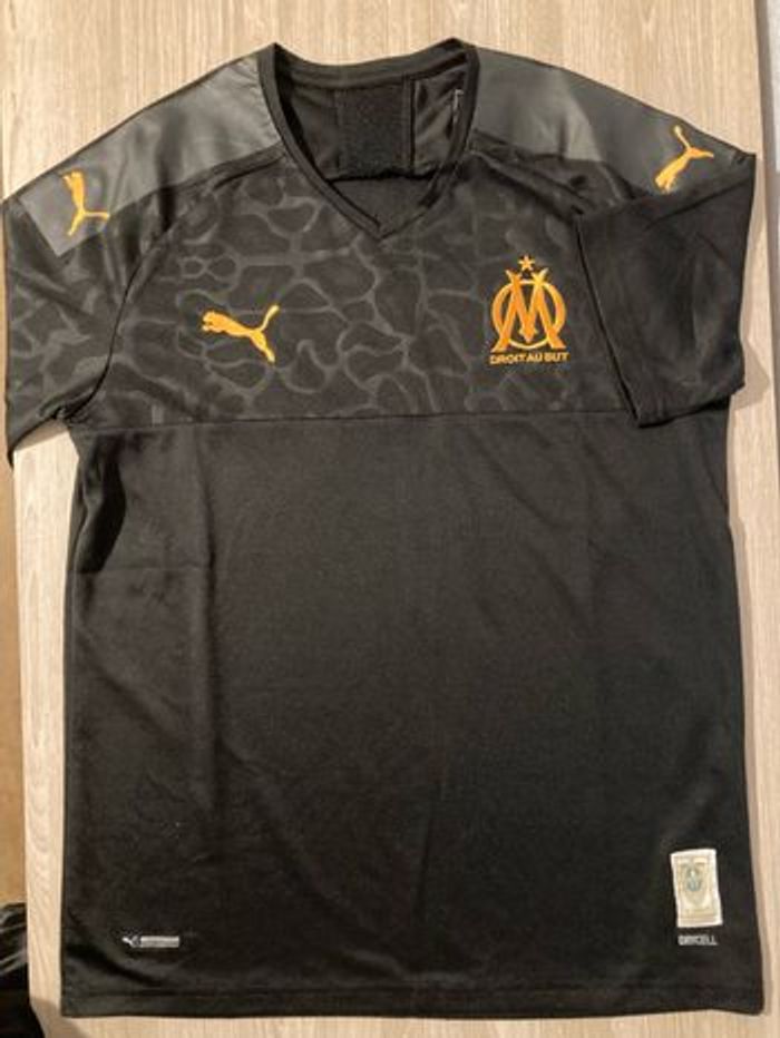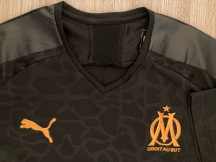 Maillot Maillot + Olympique de Marseille noir orange version supporter Taille S Coupe droite largeur 50 cm longueur 69 cm État impeccable Matière stretch tissu alvéolé Logo et écusson brodés Lavé, Plié et emballé sous plastique Envoi sous 12h max