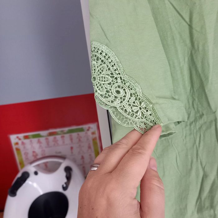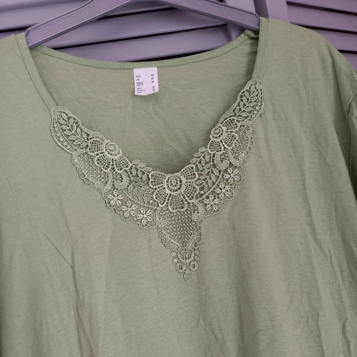 Tee shirt vert clair avec broderie aux col et sur les manches A redoute Taille 50