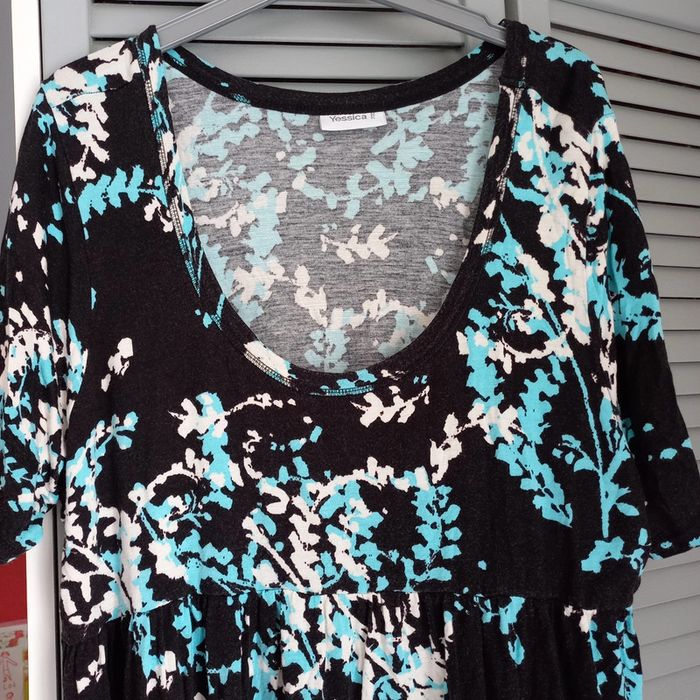 Robe à manches courtes noir bleu et blanche Col rond Yessica Taille 46