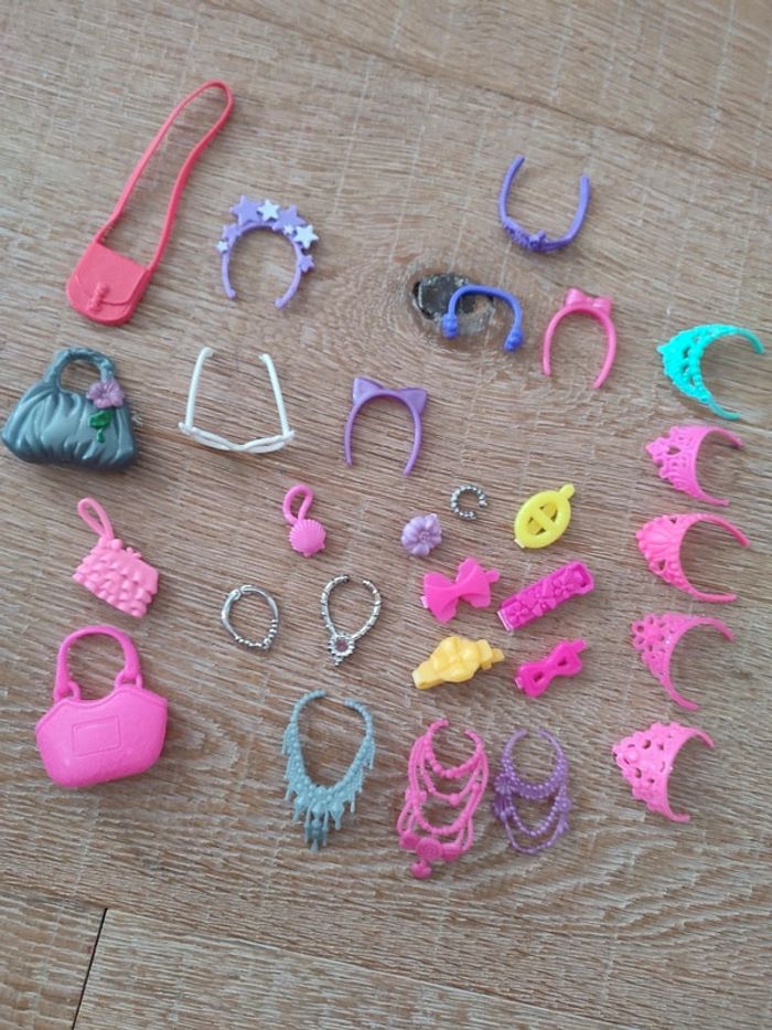 Accessoires divers, couronne, sac, colliers... Pour poupées Barbie Très Bon état