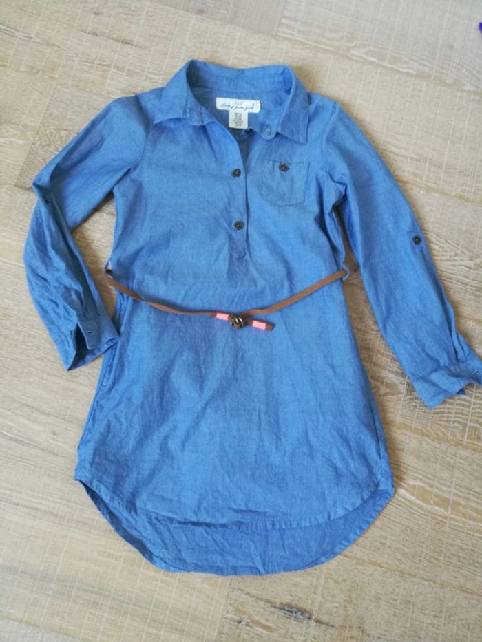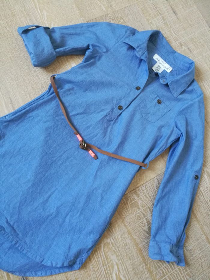 Très mignone petite tunique en jean denim mais légère, idéale avec un petit legging. Ceinture à la taille, col avec boutons. On peu mettre les manches soit en manches longues soit en 3/4 grâce au petit boutons H&M taille 5-6 ans Très bon état portée une fois, comme neuve #CicilouuuFille Envoi france lettre suivie la poste. Envoi INTERNATIONAL par mondial relais, relais colis...me contacter que je change le mode le livraison