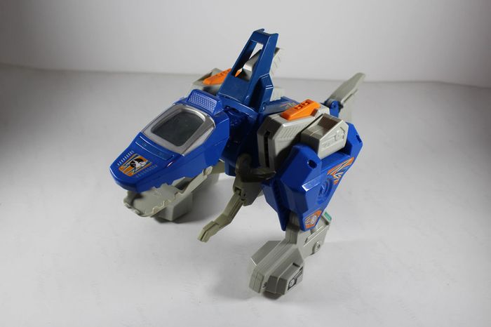 Bon état, manque 1 petit bras et un petit défaut dans la bouche mais n'empéche pas son focntionnement, fonctionne parfaitement et se transforme en dinosaure. Envoi rapide et soigné.