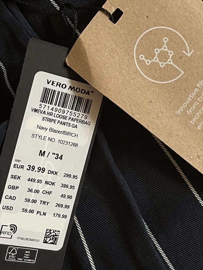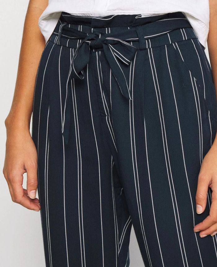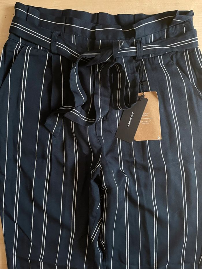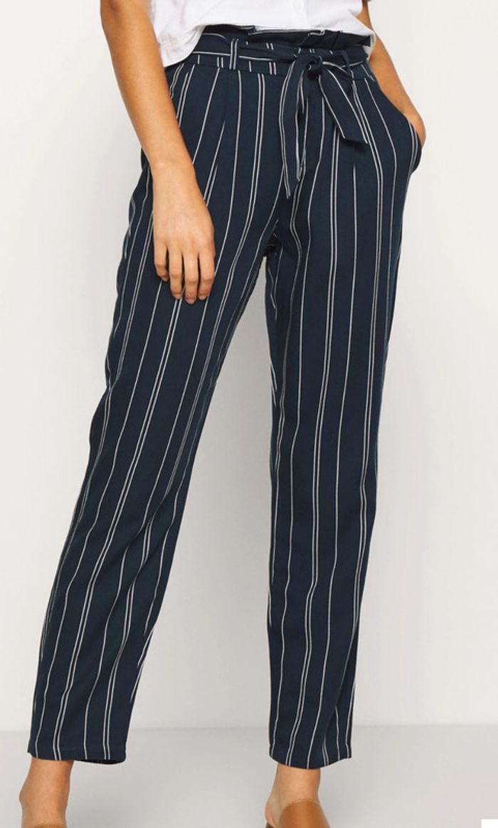 Vero Moda VMEVA LOOSE PAPERBAG STRIPE PANT - Pantalon classique - navy blazer/birch Taille M / 34 100% lyocell Prix boutique 39,99€ Neuf avec étiquettes