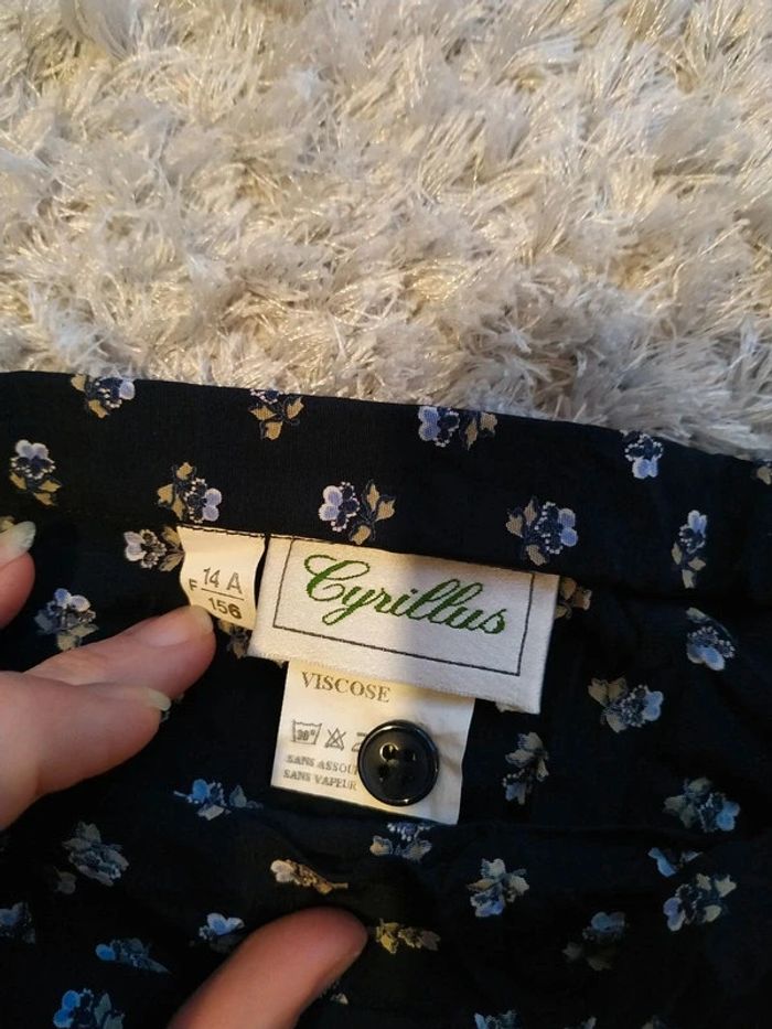 Jupe légère bleue marine à fleurs 14 ans 156 cm Cyrillus