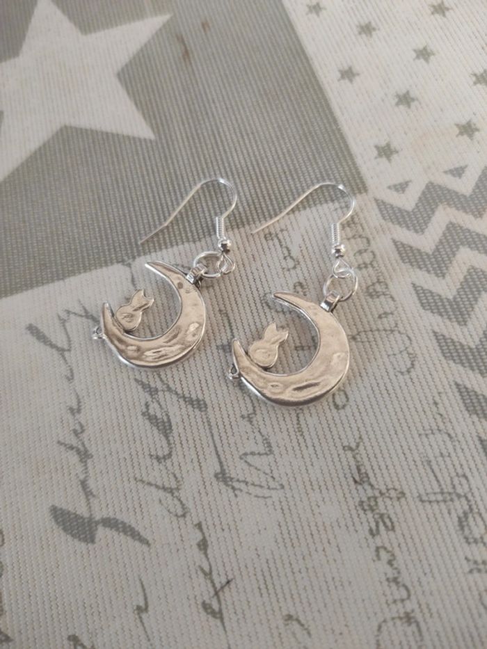 Boucles d'oreilles chat et lune - photo numéro 2