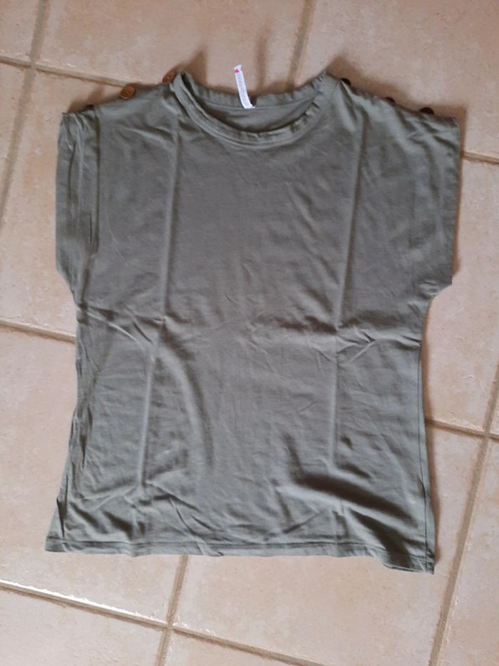 Tee-shirt manches courtes femme 38/40 Kaki - Blancheporte Boutons déco sur épaules Très peu porté Réduction par lots activées %%%