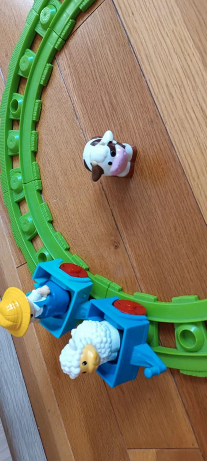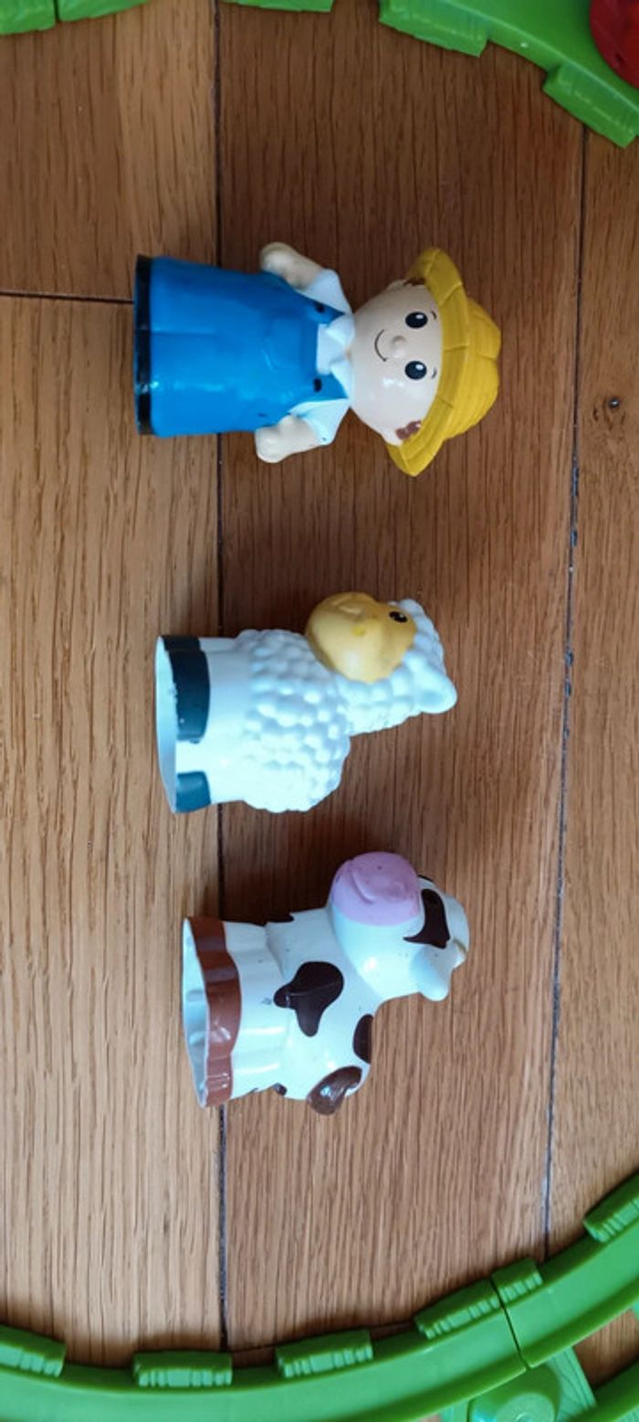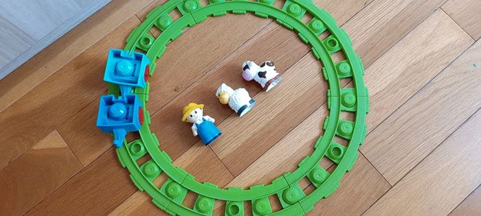 Rails, 2 remorques et 8 figurines. Toutes les figurines ne sont pas compatibles avec les remorques. J'ai mis des réductions automatiques pour les lots de 2, 3 ou 5 articles. Voici ma liste de Jouets enfant pour mutualiser les frais de port : #romain75015_Jouets et #romain75015_Figurines. Envoi rapide et soigné.