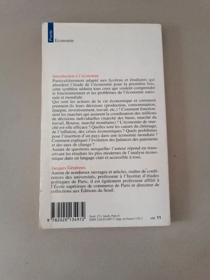Introduction à l'économie Jacques Généreux. Poids : 115 grammes. Voici le lien pour voir tous mes livres : #romain75015_Livres. Envoi rapide et soigné bien protégé pour le transport. N'hésitez pas à faire un lot pour avoir des réductions et mutualiser les frais de port. La couverture est un peu abîmée.