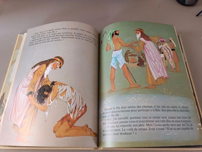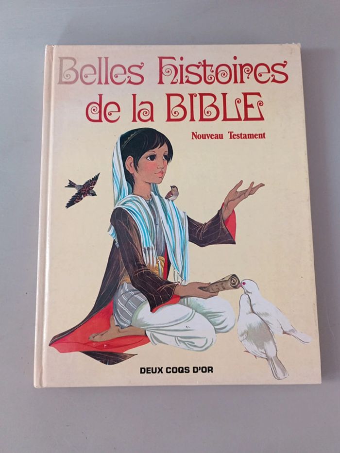 Belles histoires de la Bible nouveau testament deux coqs d'or. Décoloration sur le haut des couvertures et inscription première et dernière page voir photos. Poids : 508 grammes. Voici le lien pour voir tous mes livres : #romain75015_Livres. Pensez à faire des lots pour avoir des réductions automatiques et mutualiser les frais de port (c'est pour cela que je précise le poids). Envoi rapide et soigné bien protégé pour le transport. Petit jusqu'à 500 grammes, Moyen jusqu'à 1 Kg et Grand jusqu'à 2 Kg.