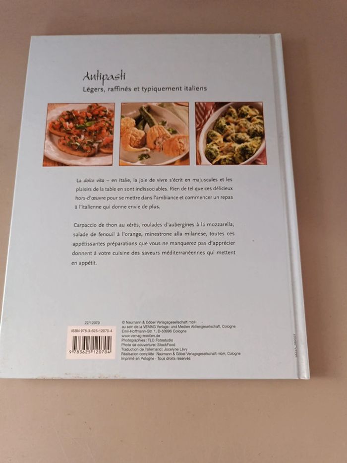 Antipasti léger, raffiné et typiquement italien livre de cuisine. Voici le lien pour voir tous mes livres : #romain75015_Livres. Poids : 416 grammes. Envoi rapide et soigné bien protégé pour le transport.