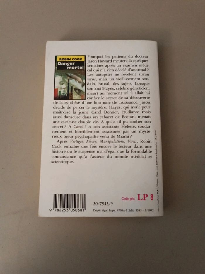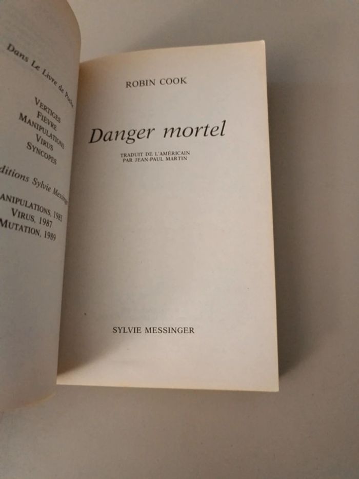 Danger mortel Robin Cook. Voici le lien pour voir tous mes livres : #romain75015_Livres. Poids : 158 grammes. Envoi rapide et soigné bien protégé pour le transport.