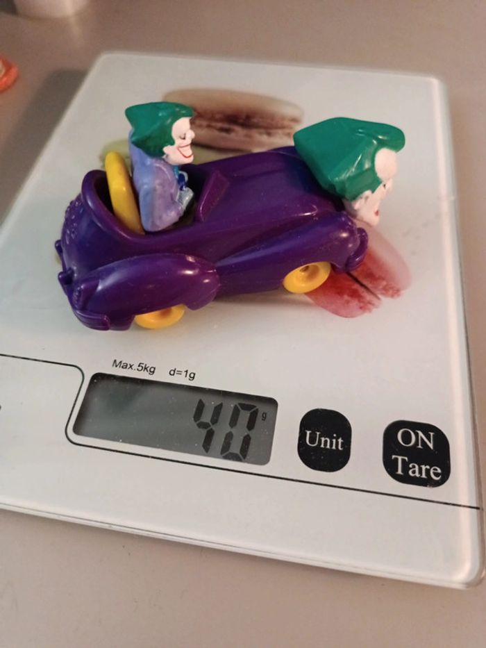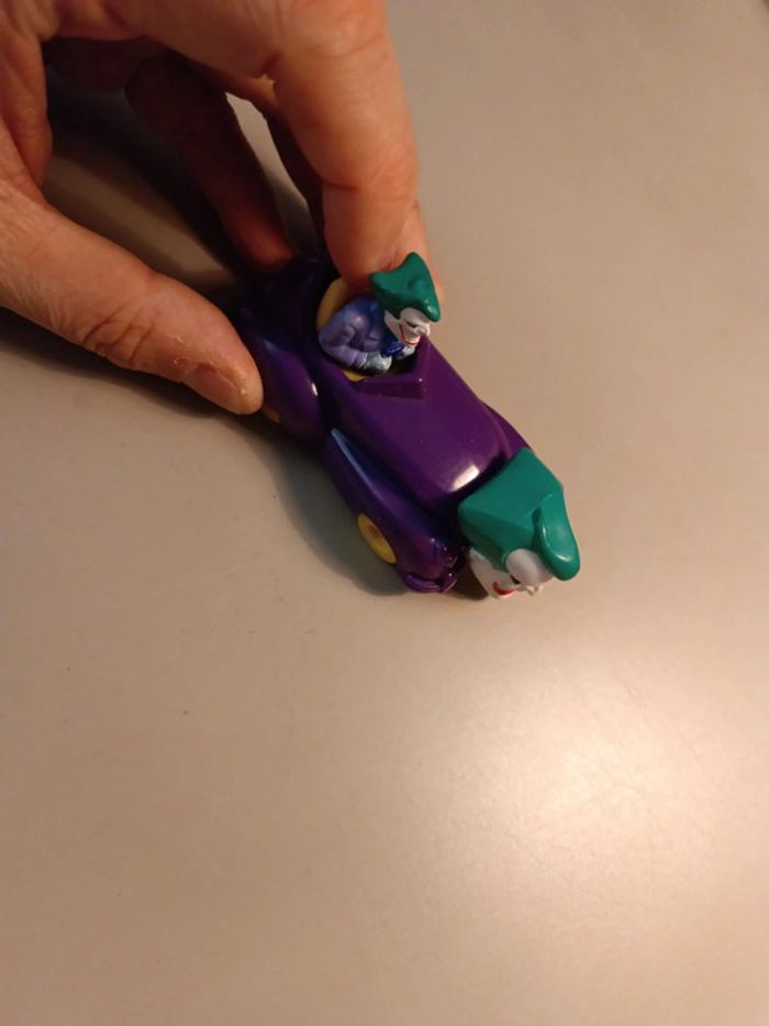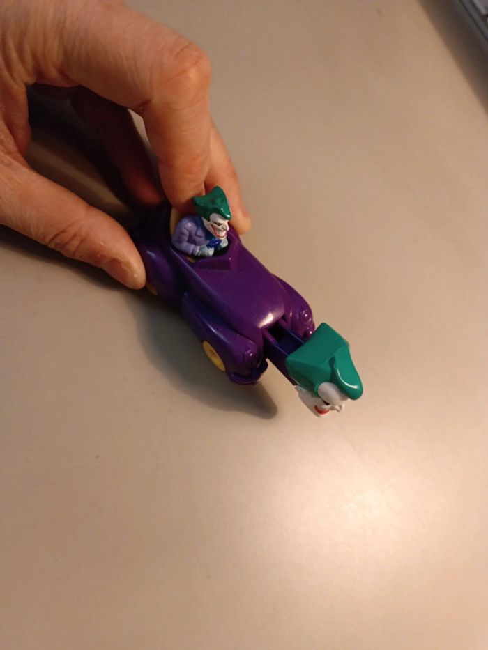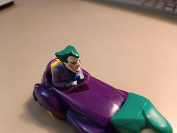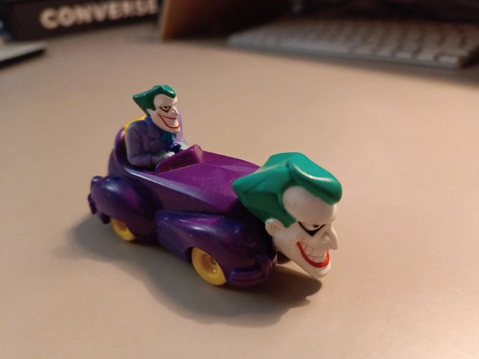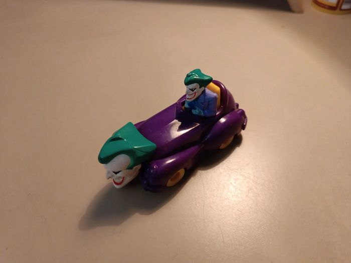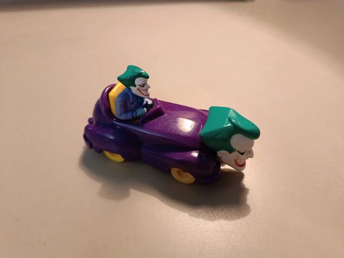 Une figurine RARE le Joker avec sa voiture Joker 1993. Quand on appuie sur le siège du Joker la tête de la voiture joker avance. Voici ma liste de Jouets enfant pour mutualiser les frais de port : #romain75015_Jouets et #romain75015_Figurines. Poids : 40 grammes. Envoi rapide et soigné.