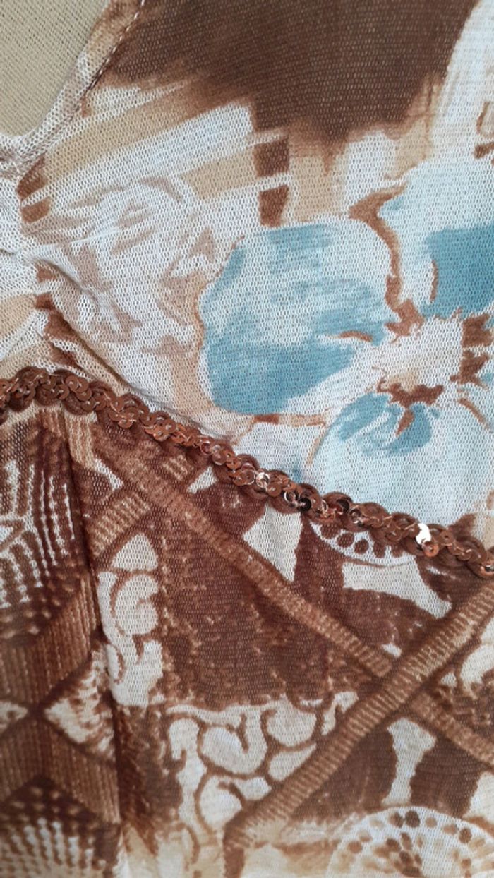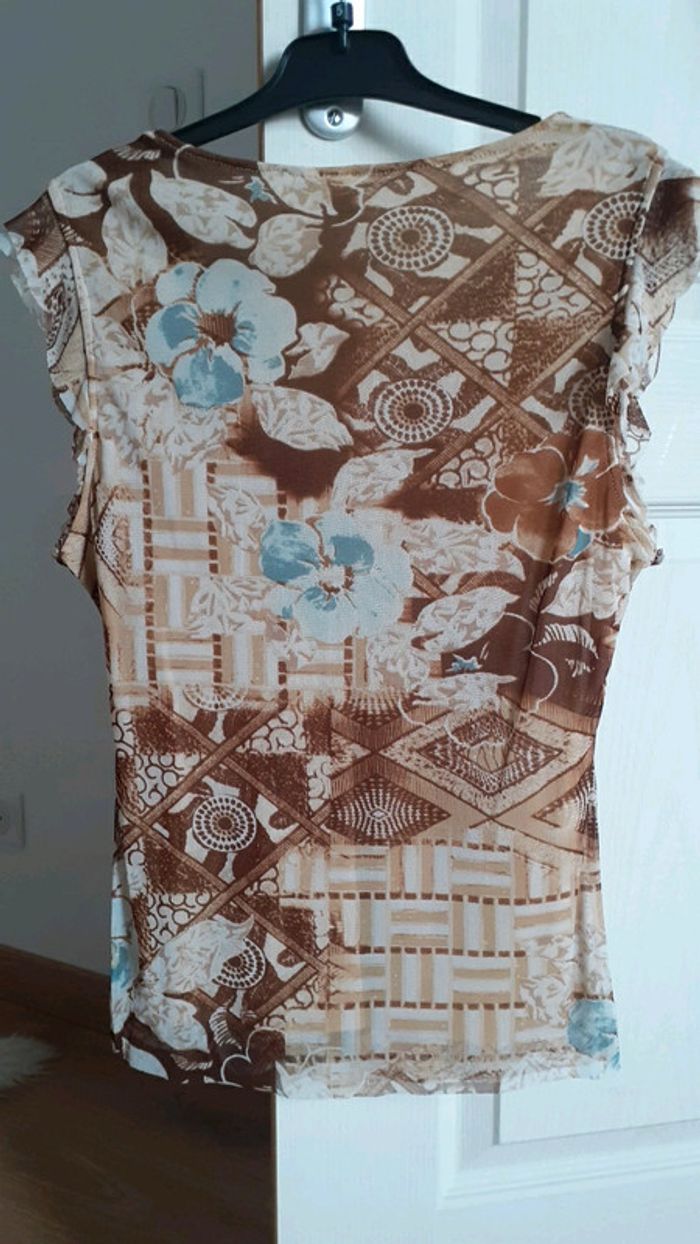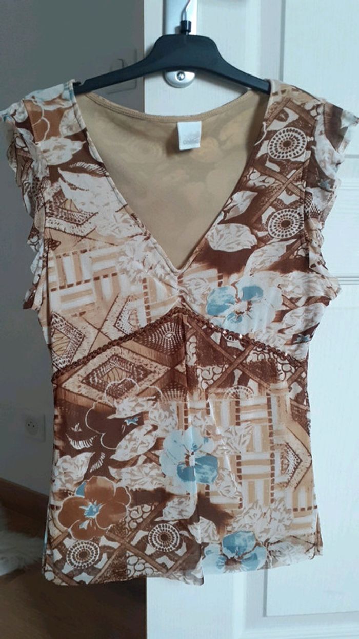 Au camaïeu très léger pour l'été, matière très élastique, l'étiquette est notée en taille L mais il vaut un taille M Porté 1 ou 2 fois, en très bonne état