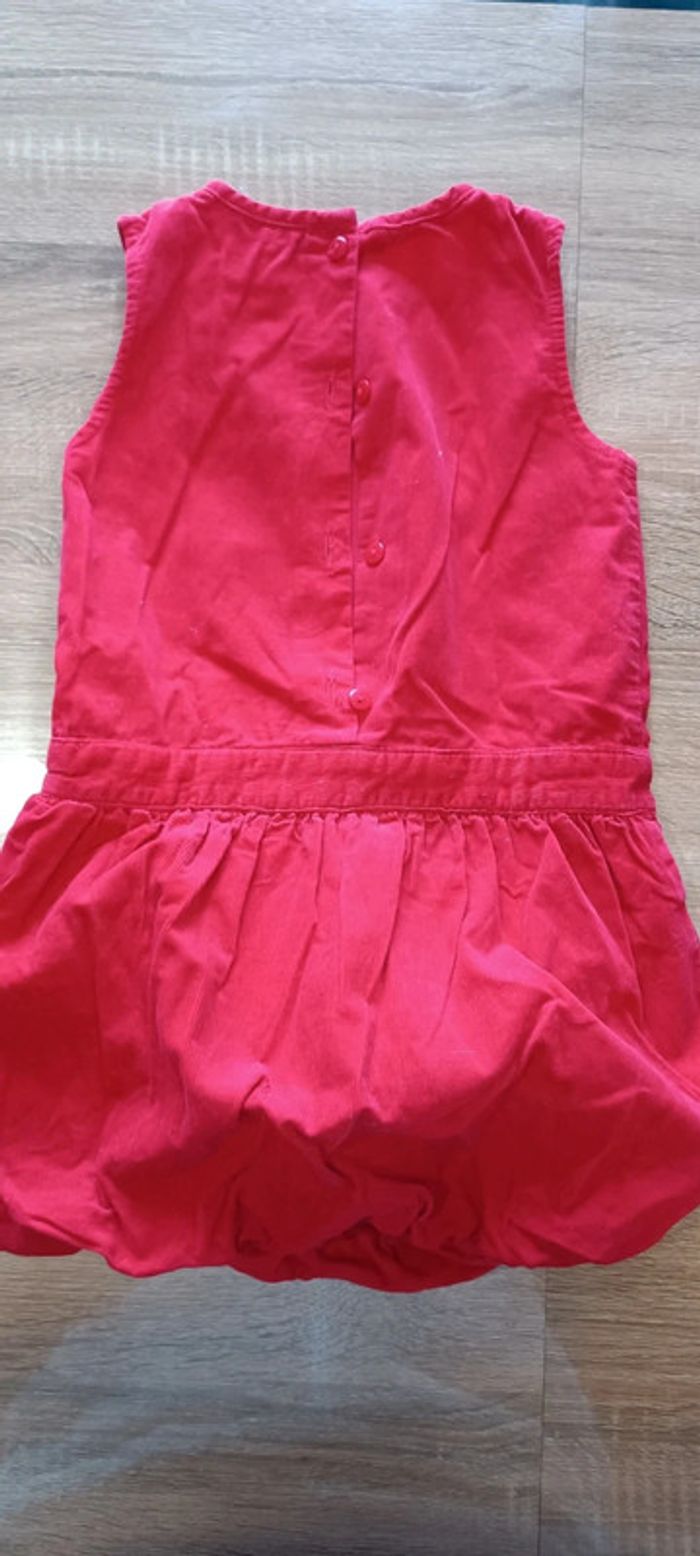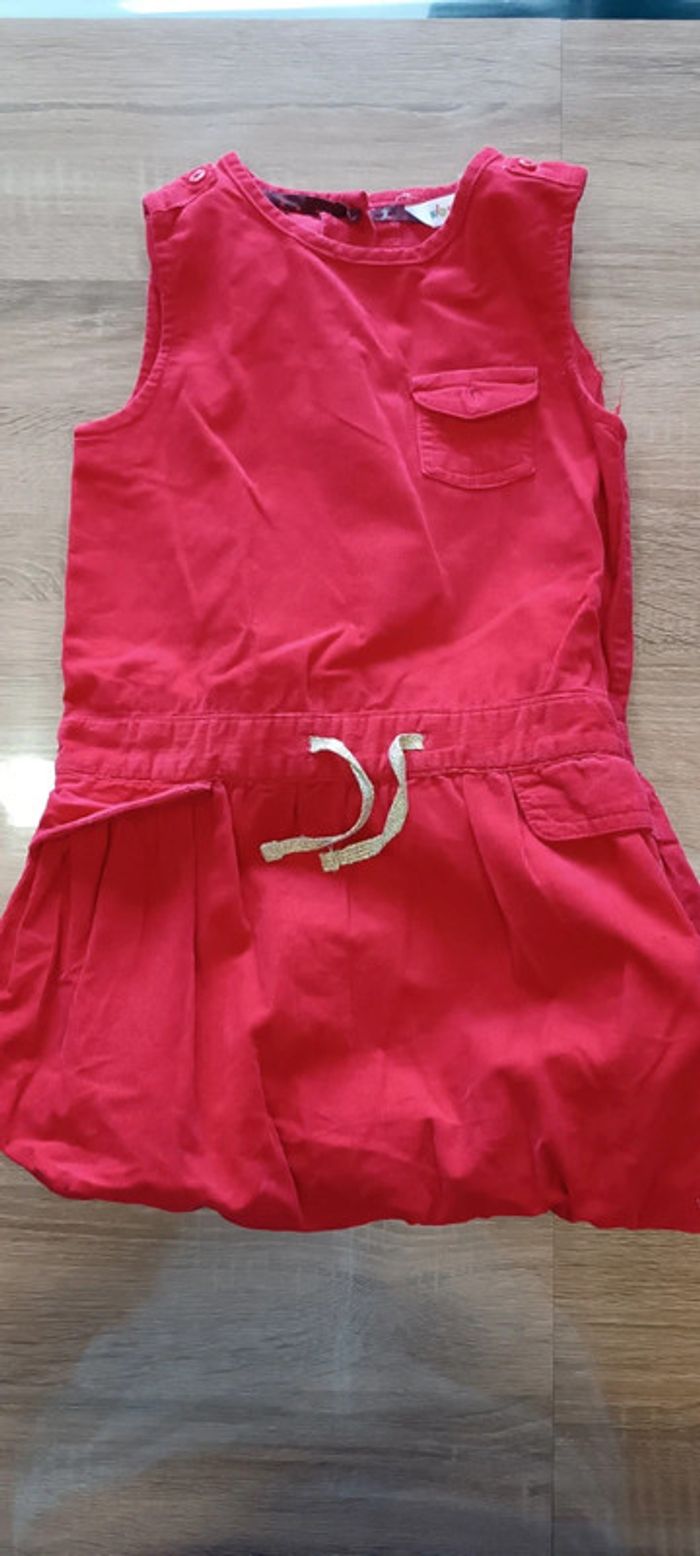 Robe neuve taille 3 ans (94cm) Tissu velours rouge et cordon pour resserrer doré Bas de la robe à effet boule Marque kid kanaï