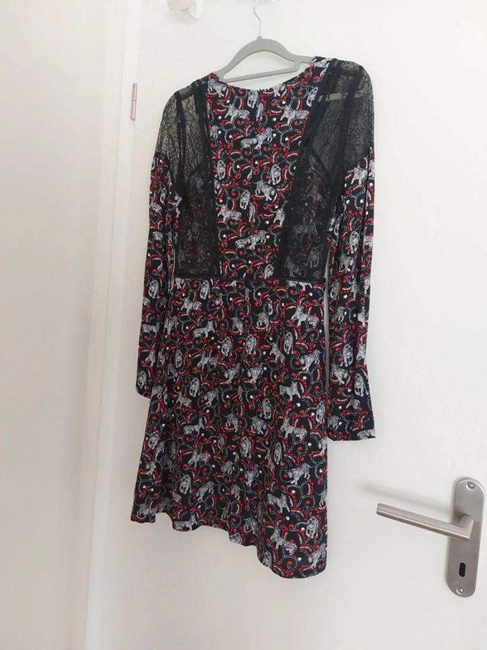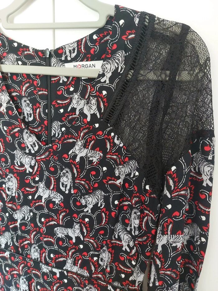 Jolie robe Morgan. Neuve Taille 34 Imprimé tigre Dentelle devant et dans le dos Doublure noire légère. Idéal printemps ou automne Prix de l a robe à l'achat 75 euros