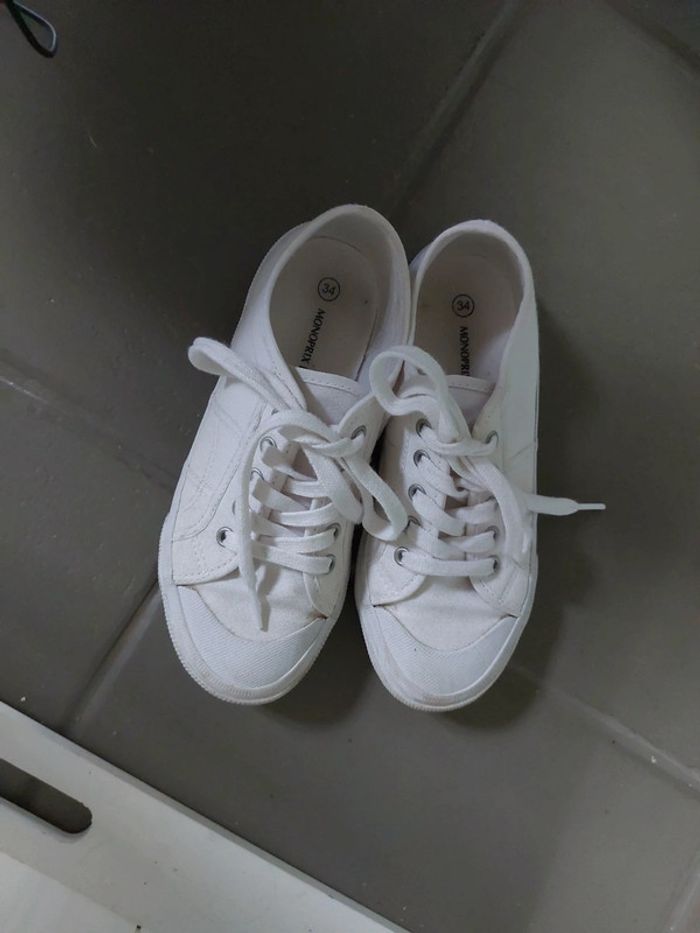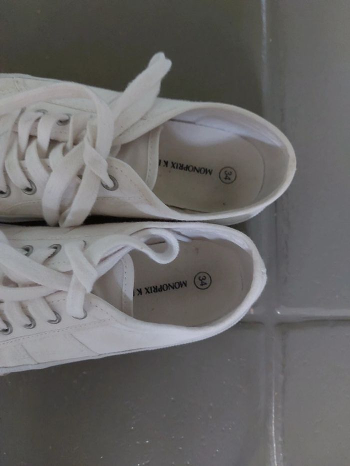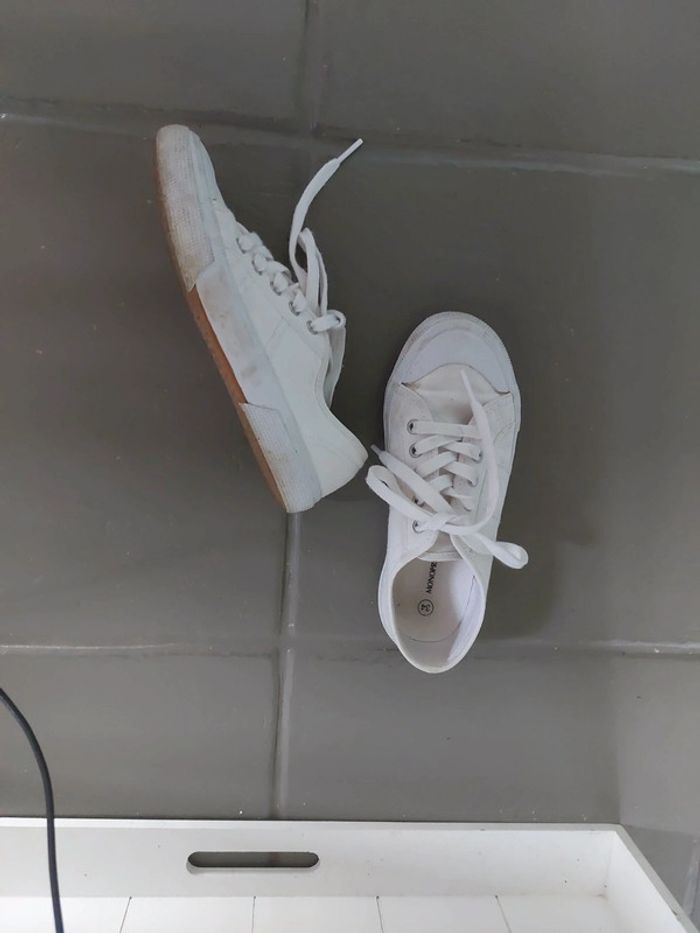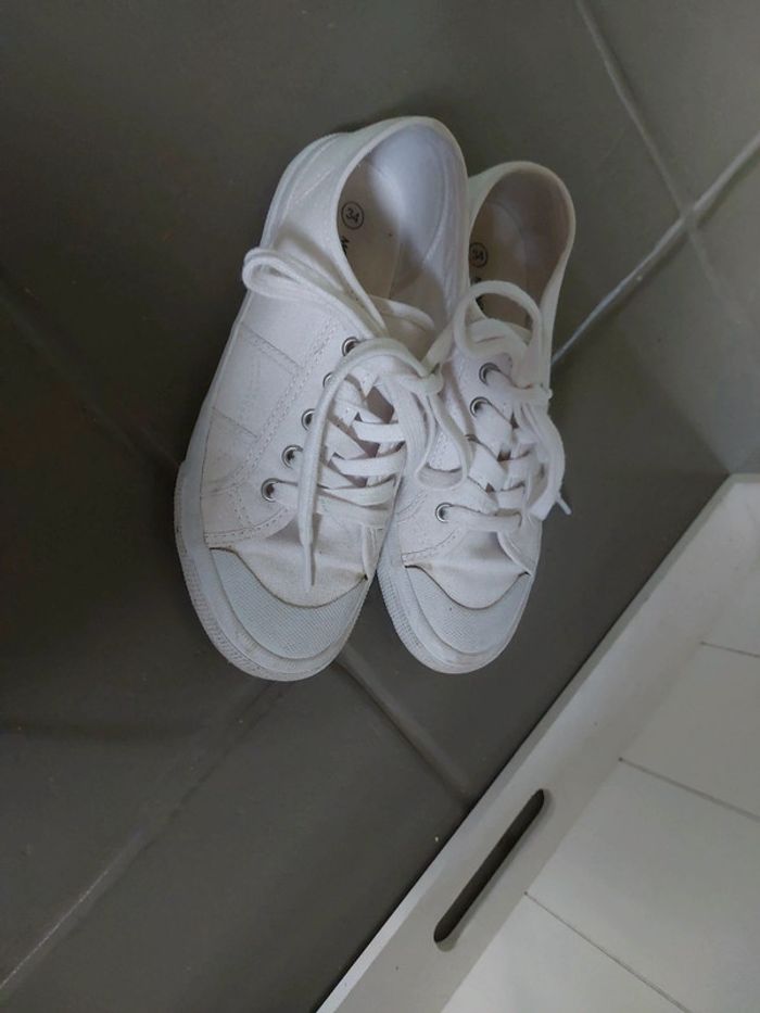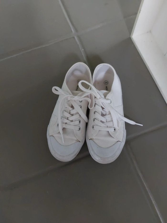 Jolies petites basquets toile blanche Portées 2 fois.. mais trop petites maintenant Pointure 34