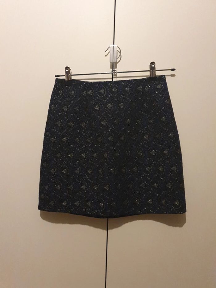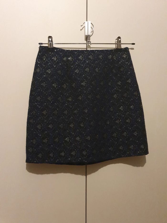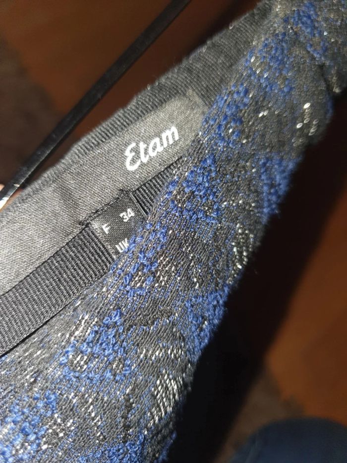 Jolie jupe etam Juste lavée Taille 34. Bleue noire et dorée. Neuve