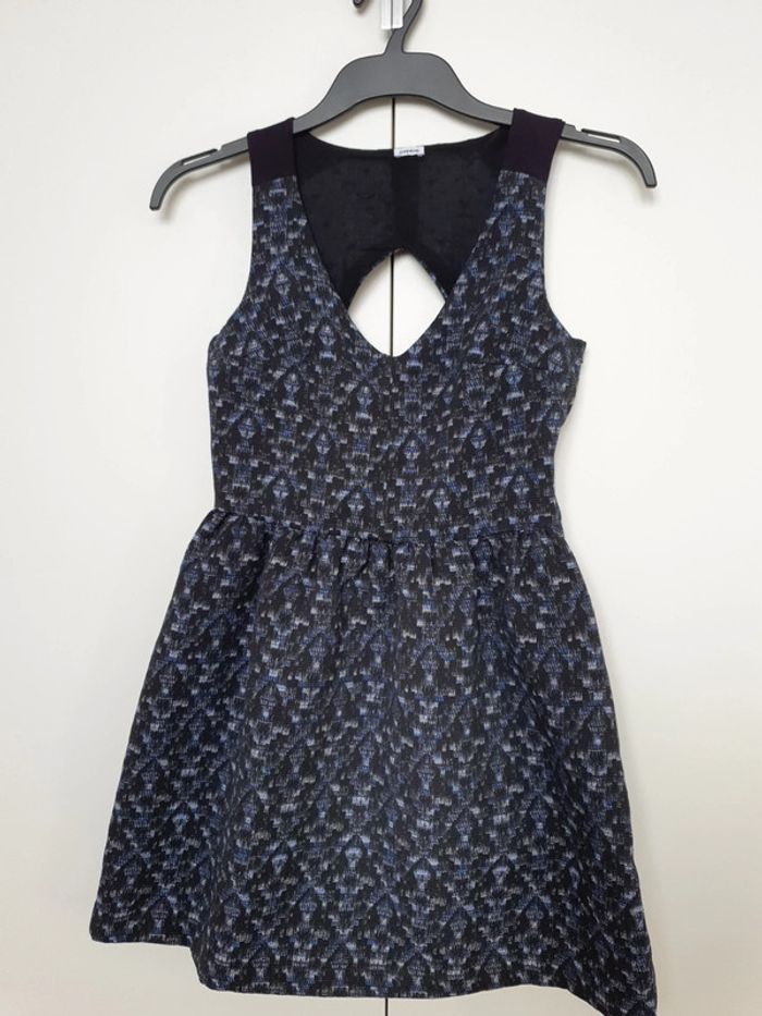 Jolie robe bleue et noire. Ouverte dans le dos. État neuf. Jamais portée. Marque pimkie taille 36 Coupe patineuse. Ajustée à la poitrine