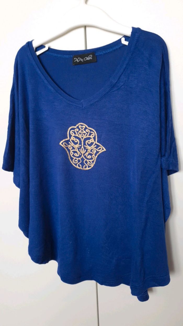 T shirt bleu doré oriental - photo numéro 1