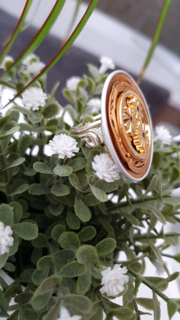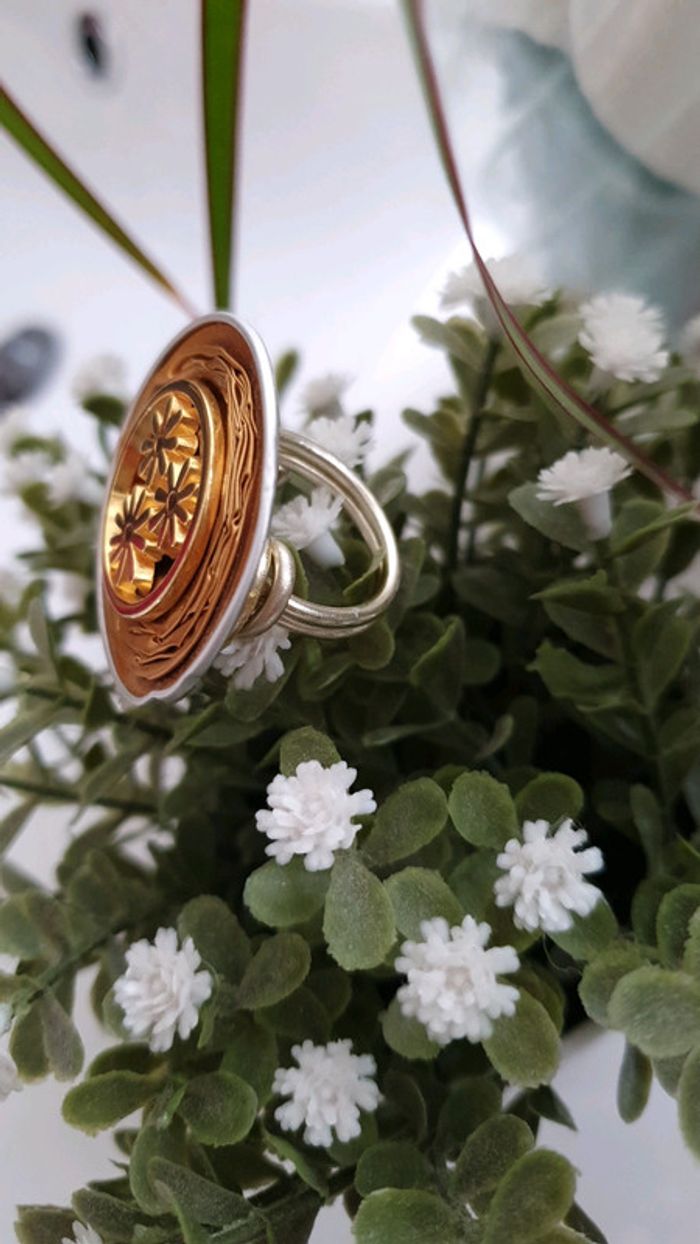 Jolie bague créateur dorée Réalisée à base de capsule de café Neuve et taille ajustable