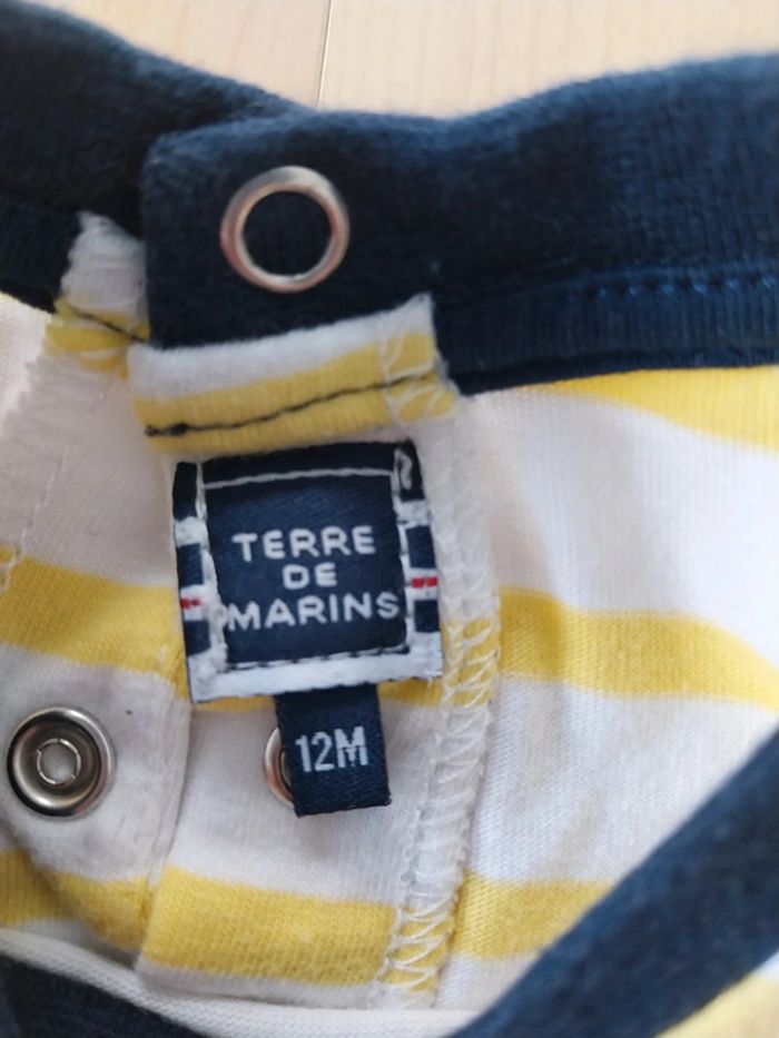 T-shirt bébé 12 mois terre de marins rayé blanc et jaune
