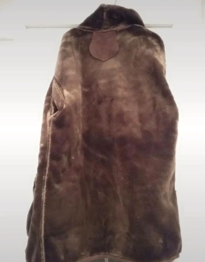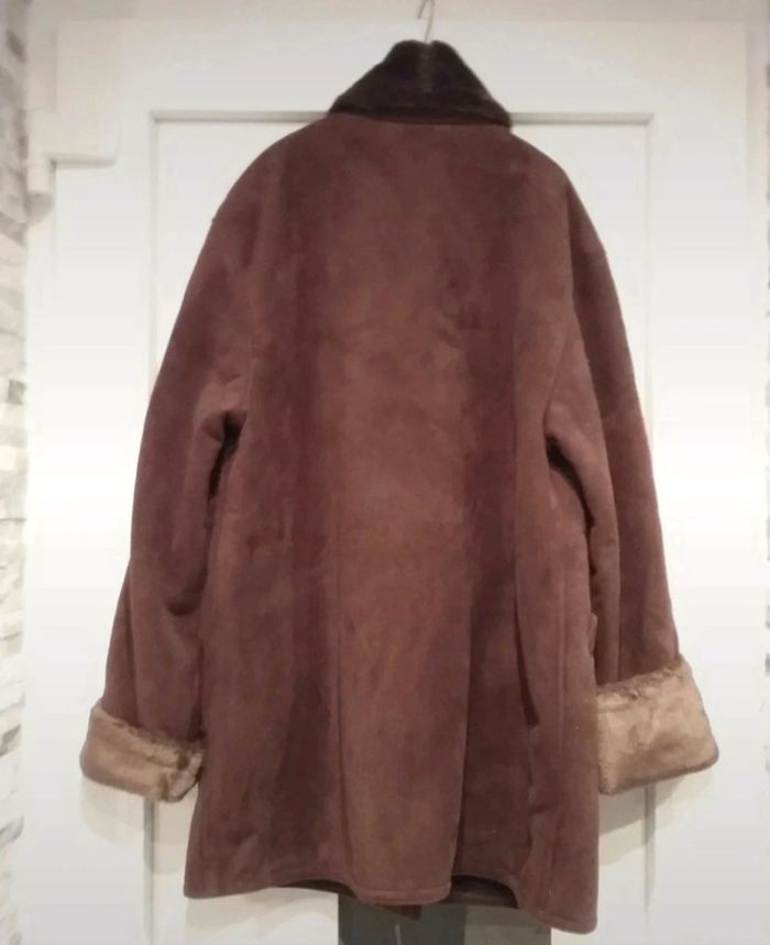 Manteau imitation croûte de cuir retourné. Aspect duveteux.
