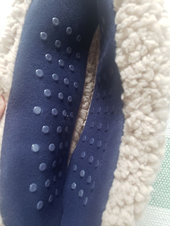 Mixte / Unisexe NEUFS jamais portés (et encore attachés) Semelles antidérapantes bleu marine Sherpa/fourrure beige Indiquée pointure/taille 40/41 mais PETIT Top doudouille !!