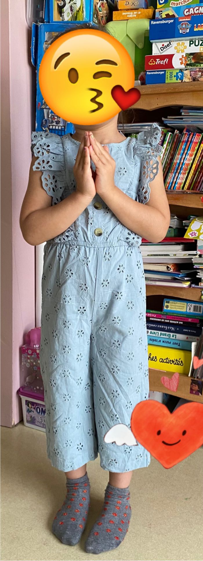 État neuf. Marqué pour 4-5 ans mais convient plutôt à 4 ans, car ma fille elle fait 108cm mais un peu serré comme photo.