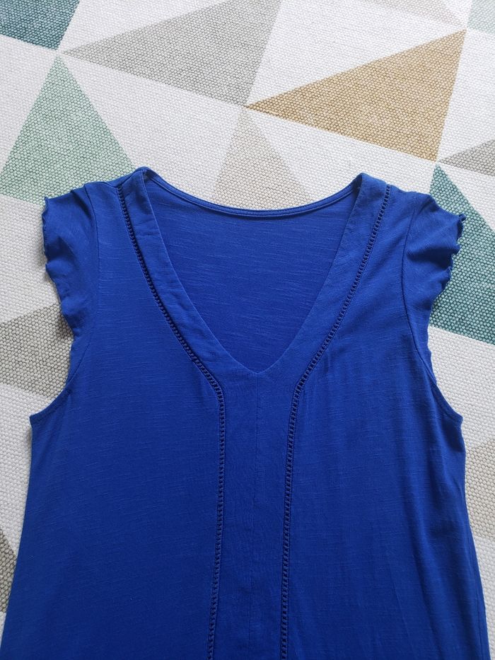 NEUVE jamais portée 🏷 Prix boutique PROMOD 39,99 Eur⚠️ Etiquette taille/marque coupée Convient taille FR 1 / 36 / Small Longueur genoux / Col V Liens ajustable à la taille Volants sur les épaules / Sans manche Superbe 🌸