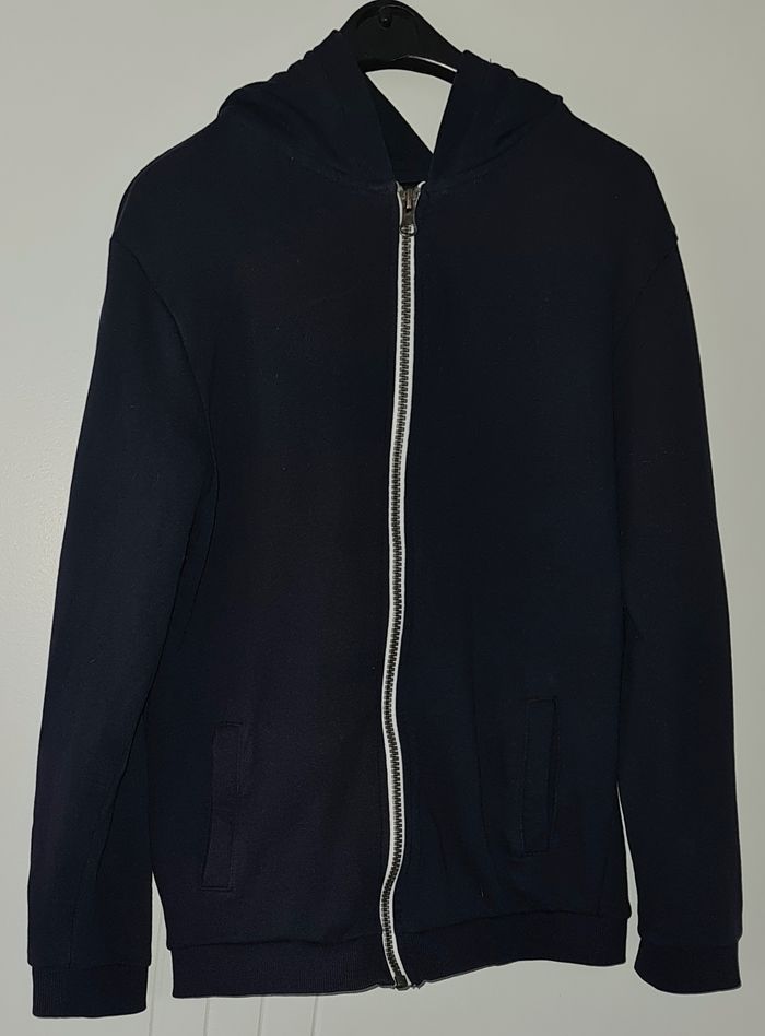 A la vente, en très bon état, ce joli sweat zippé à capuche bleu marine, de marque "KIABI". En semaine, cet article peut vous être déposé à l'Espace Européen de l'entreprise, Schiltigheim.
