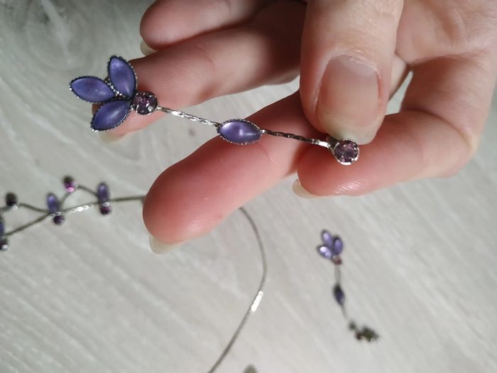 Parure argentée et violet Collier et boucles d'oreilles. - photo numéro 9