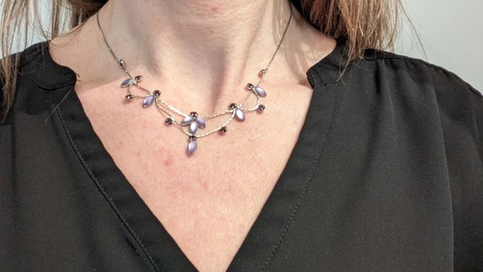 Parure argentée et violet Collier et boucles d'oreilles. - photo numéro 3