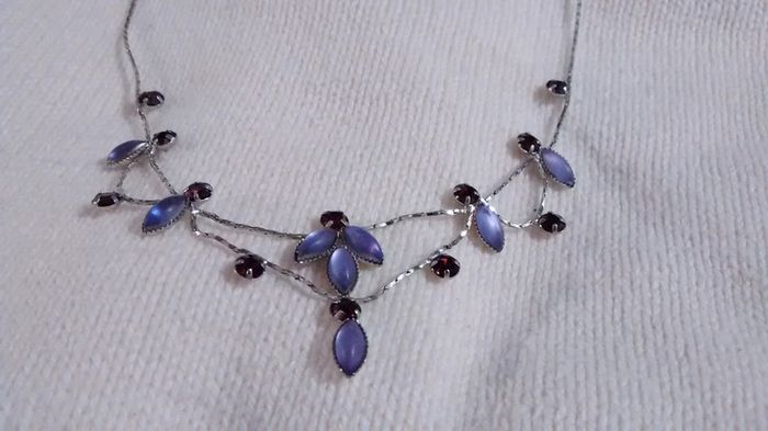 Parure argentée et violet Collier et boucles d'oreilles. - photo numéro 1
